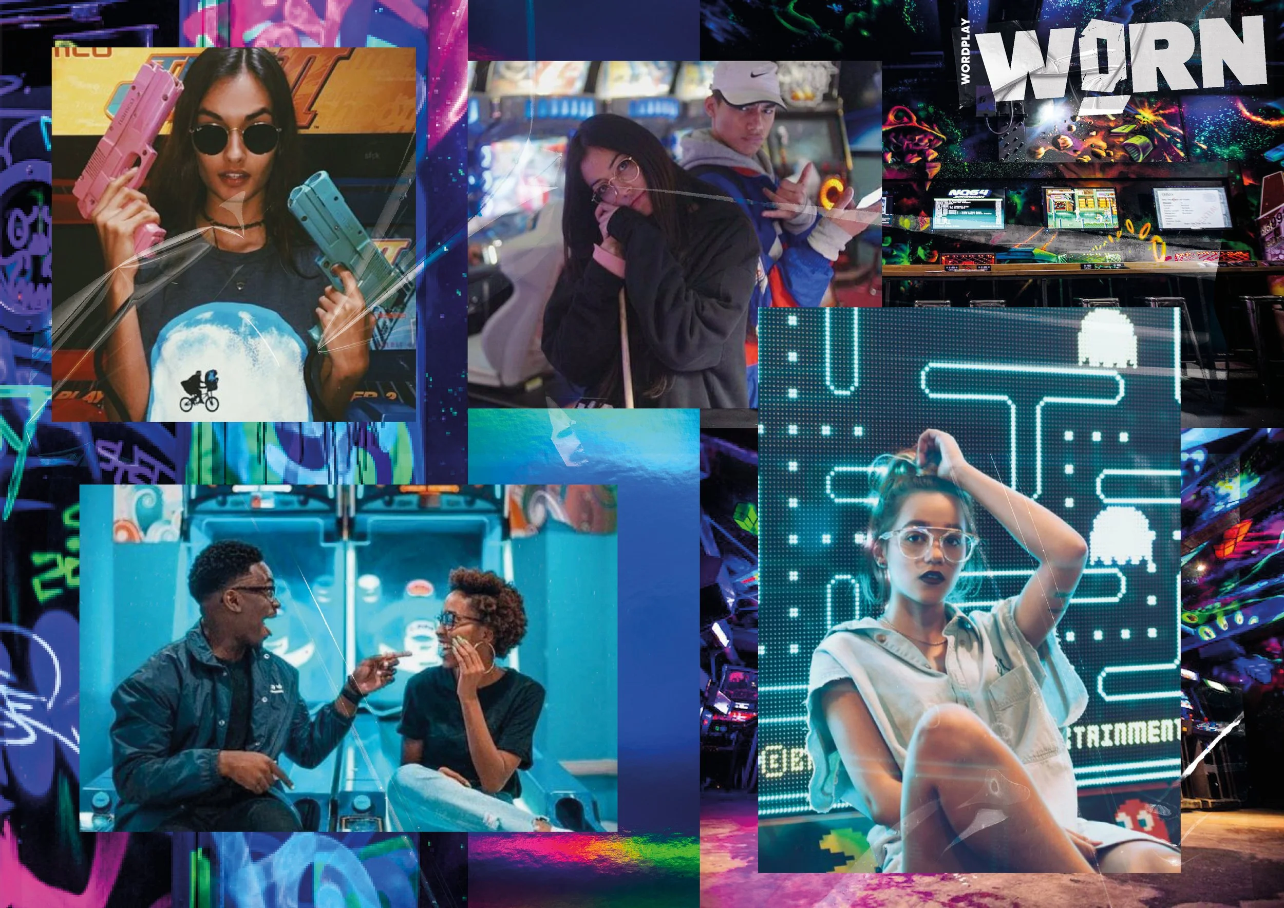 We’re going bright and loud for our next issue; a multimedia extravaganza bathed in neon, blacklight and day-glo; a hyperreal visual end-of-level-boss-fight of sorts. Amping up the colour after what seems like a dull thud of two years passing and we want to carry the hi-octane attitude across to our models – unashamedly raucous and gleaming in hi-res! Our location (TBC) is hopefully one packed full of incandescent, flickering screens in aquamarine… The garms and accessories then are complimenting or contrasting, making K.O. combos along the way – above and below are moodboards illustrative of the direction we’re racing in.
